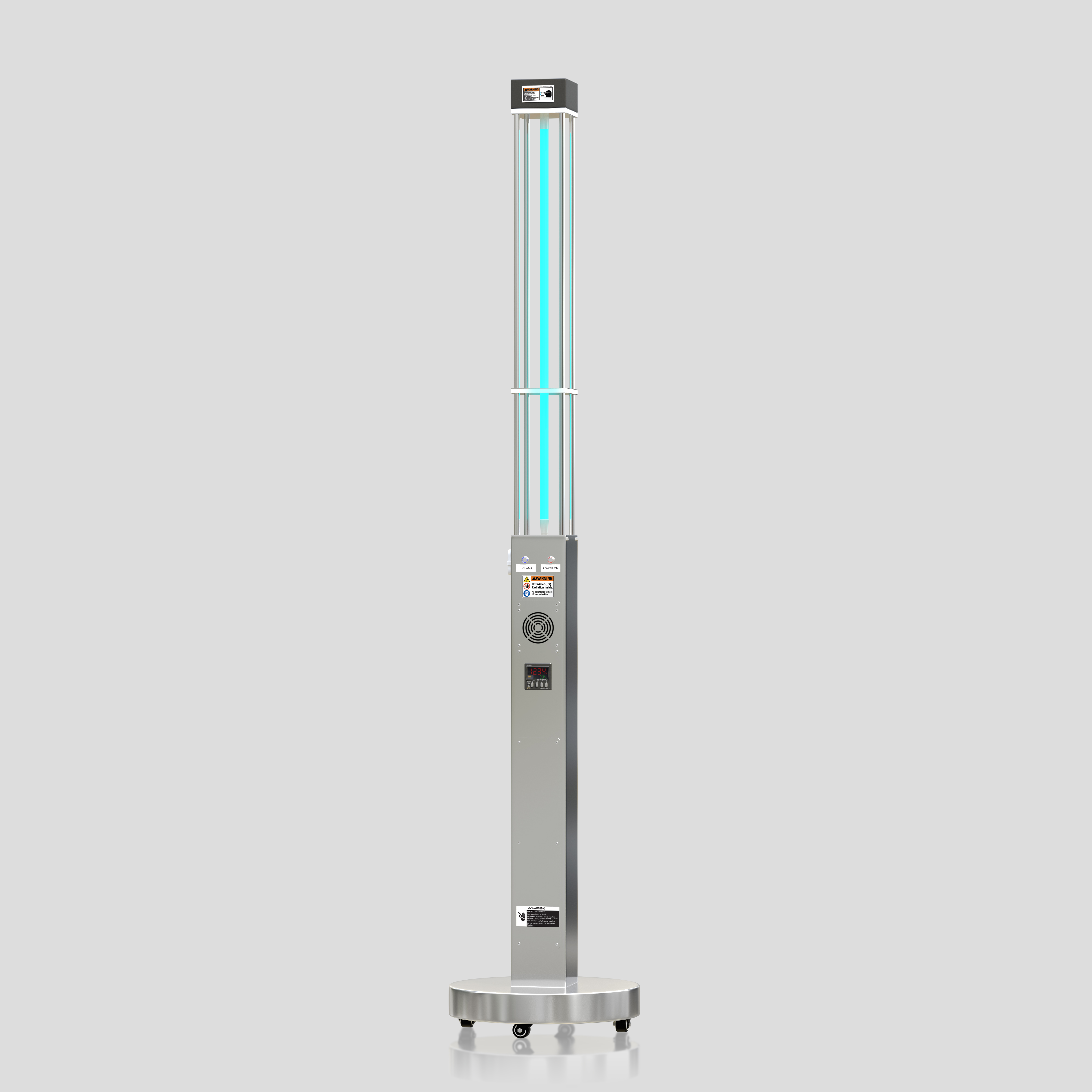 ยูวีโมบายสำหรับทำลายเชื้อโรคบนพื้นผิวเชื้อไวรัสและแบคทีเรียชนิดเคลื่อนย้ายได้เหมาะสำหรับฆ่าเชื้อภายในห้องปฏิบัติการคลินิคโรงพยาบาลห้องคลีนรูมเปิดตอนไม่มีคนอยู่ควบคุมการเปิด-ปิดด้วยรีโมทคอนโทรลและตั้งเวลาเปิดปิดให้เหมาะสมแก่การใช้งานปลอดภัยต่อผู้ใช้งาน มีระบบดูดอากาศเพื่อดึงอากาศภายในห้องนำไปผ่านหลอดยูวี เหมาะสำหรับห้องขนาด 60 - 80 ตรม.